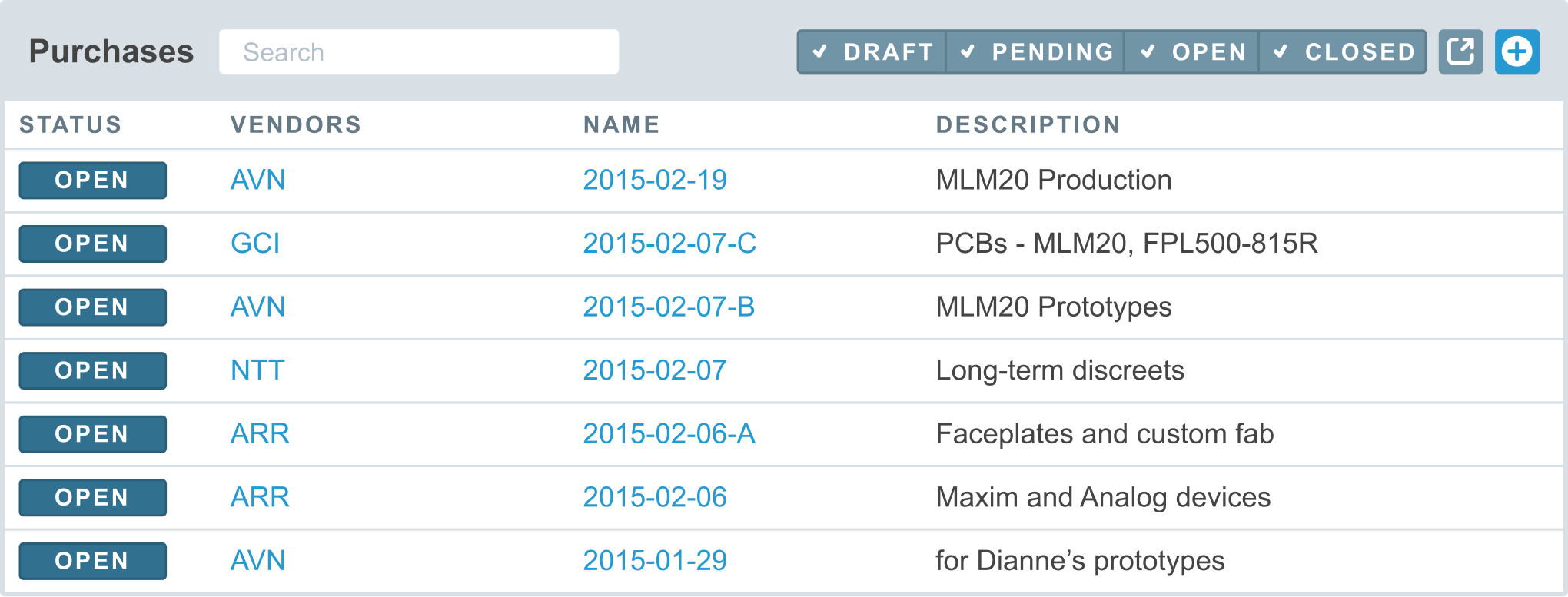 - Search – Some dashboards also have basic search capability. For example, the Build Manager will search for part names or build descriptions to help you find a particular build.